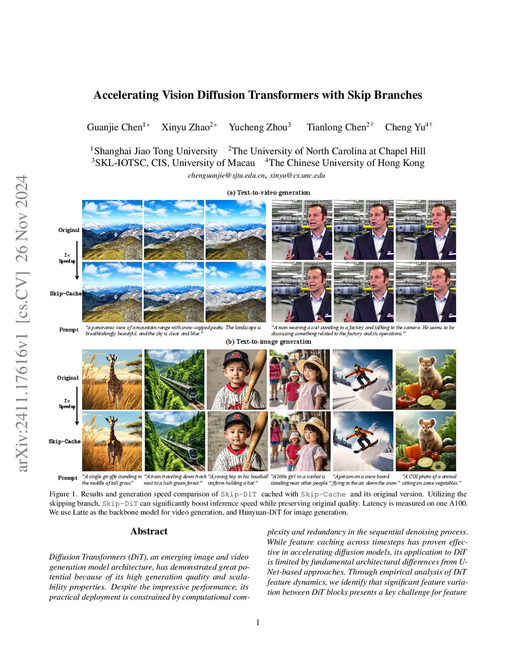 Accelerating Vision Diffusion Transformers with Skip Branches