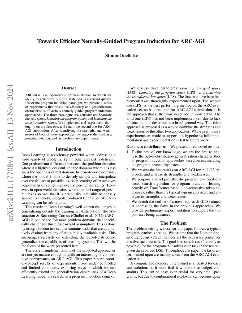 ARC-AGI is an open-world problem domain in which the ability to generalize out-of-distribution is a crucial quality. Under the program induction paradigm, we present a series of experiments that reveal the efficiency and generalization characteristics of various neurally-guided program induction approaches. The three paradigms we consider are Learning the grid space, Learning the program space, and Learning the transform space. We implement and experiment thoroughly on the first two, and retain the second one for ARC-AGI submission. After identifying the strengths and weaknesses of both of these approaches, we suggest the third as a potential solution, and run preliminary experiments.