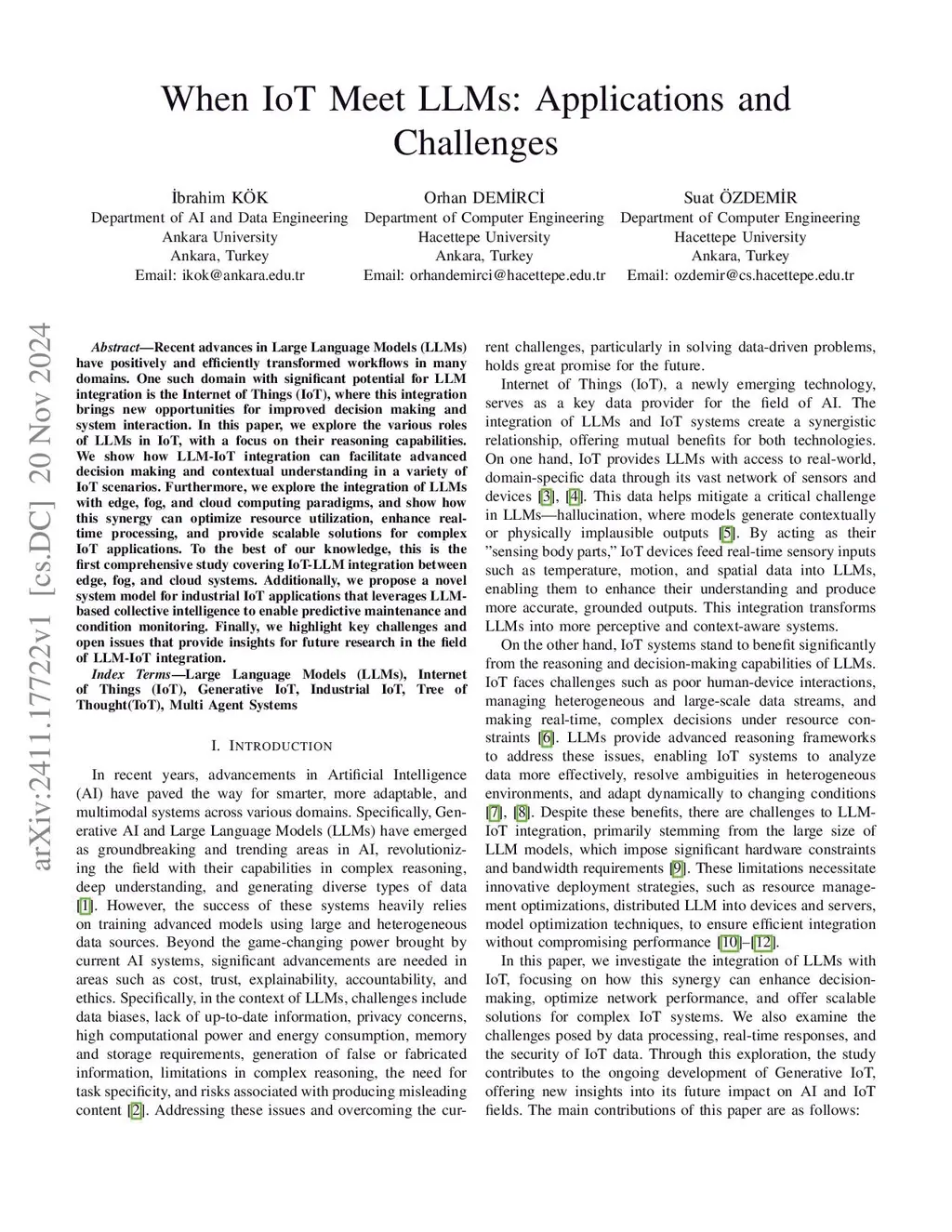 When IoT Meet LLMs: Applications and Challenges