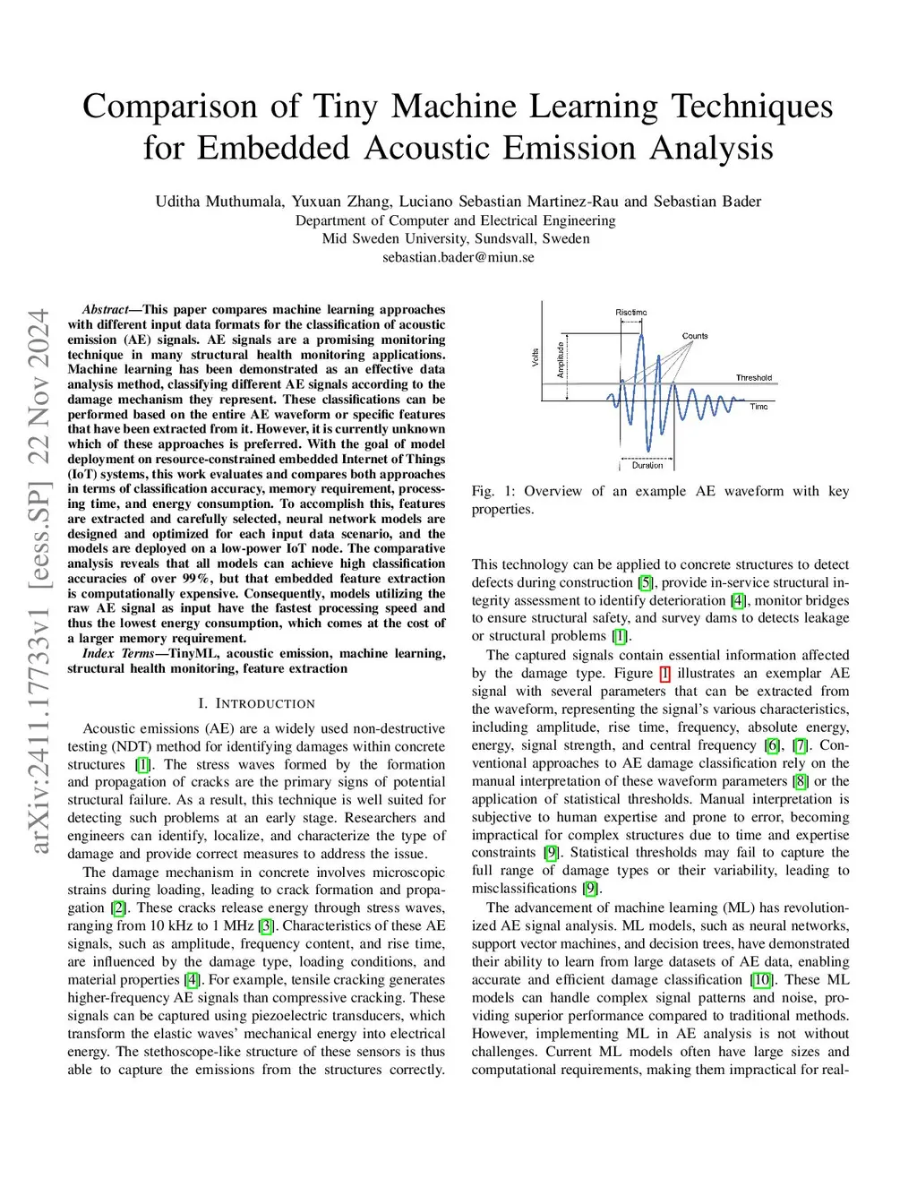 Comparison of Tiny Machine Learning Techniques for Embedded Acoustic