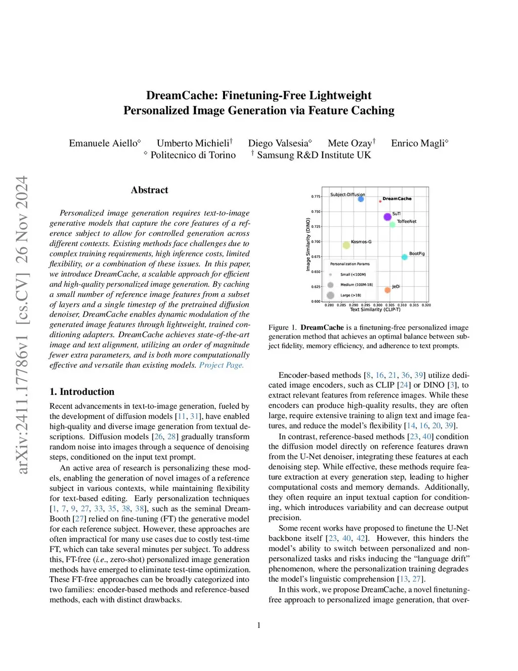 DreamCache: Finetuning-Free Lightweight Personalized Image Generation