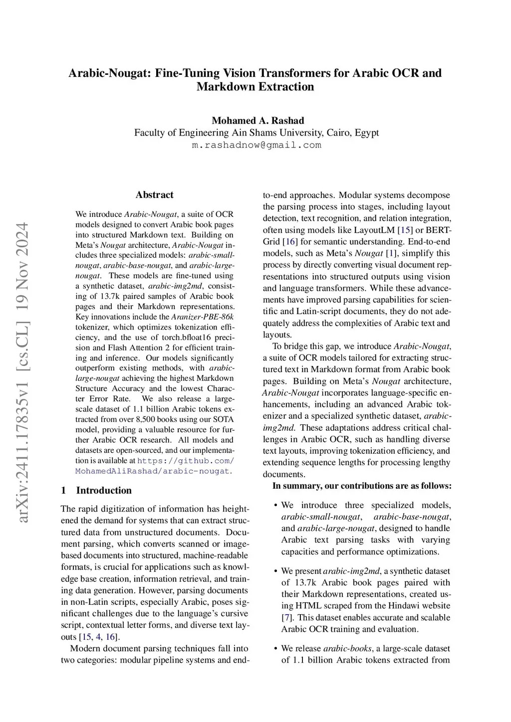 Arabic-Nougat: Fine-Tuning Vision Transformers for Arabic OCR and