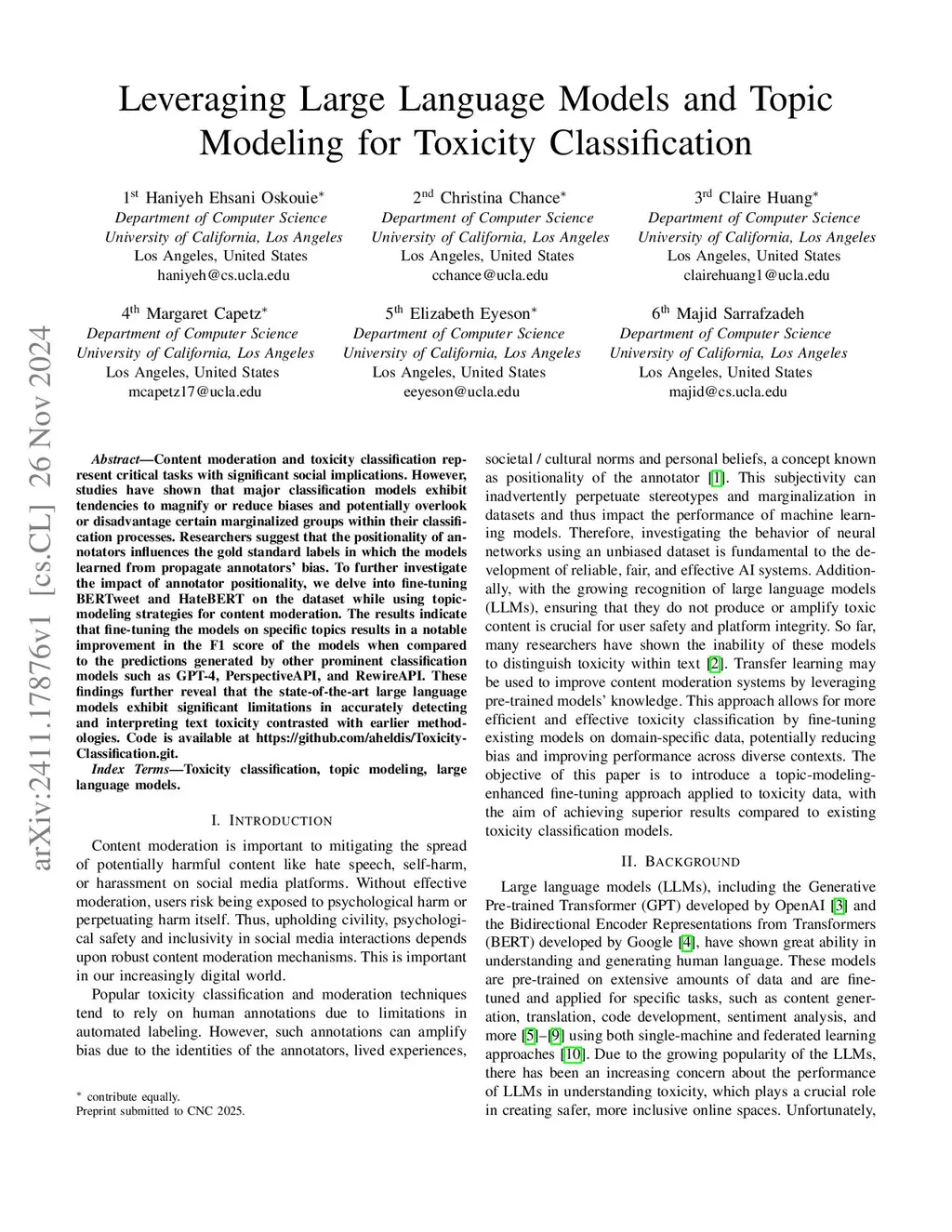 Leveraging Large Language Models and Topic Modeling for Toxicity