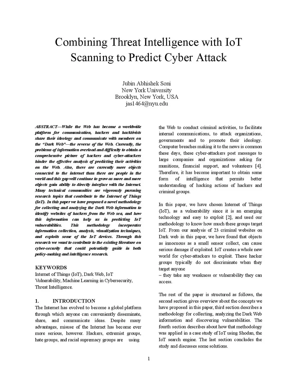 Combining Threat Intelligence with IoT Scanning to Predict Cyber Attack