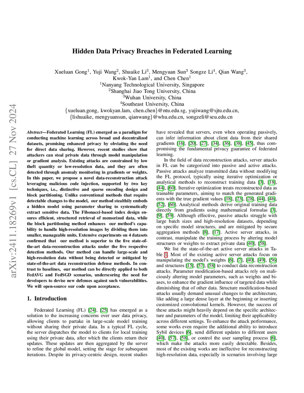Federated Learning (FL) emerged as a paradigm for conducting machine learning across broad and decentralized datasets, promising enhanced privacy by obviating the need for direct data sharing. However, recent studies show that attackers can steal private data through model manipulation or gradient analysis. Existing attacks are constrained by low theft quantity or low-resolution data, and they are often detected through anomaly monitoring in gradients or weights. In this paper, we propose a novel data-reconstruction attack leveraging malicious code injection, supported by two key techniques, i.e., distinctive and sparse encoding design and block partitioning. Unlike conventional methods that require detectable changes to the model, our method stealthily embeds a hidden model using parameter sharing to systematically extract sensitive data. The Fibonacci-based index design ensures efficient, structured retrieval of memorized data, while the block partitioning method enhances our method's capability to handle high-resolution images by dividing them into smaller, manageable units. Extensive experiments on 4 datasets confirmed that our method is superior to the five state-of-the-art data-reconstruction attacks under the five respective detection methods. Our method can handle large-scale and high-resolution data without being detected or mitigated by state-of-the-art data reconstruction defense methods. In contrast to baselines, our method can be directly applied to both FedAVG and FedSGD scenarios, underscoring the need for developers to devise new defenses against such vulnerabilities. We will open-source our code upon acceptance.