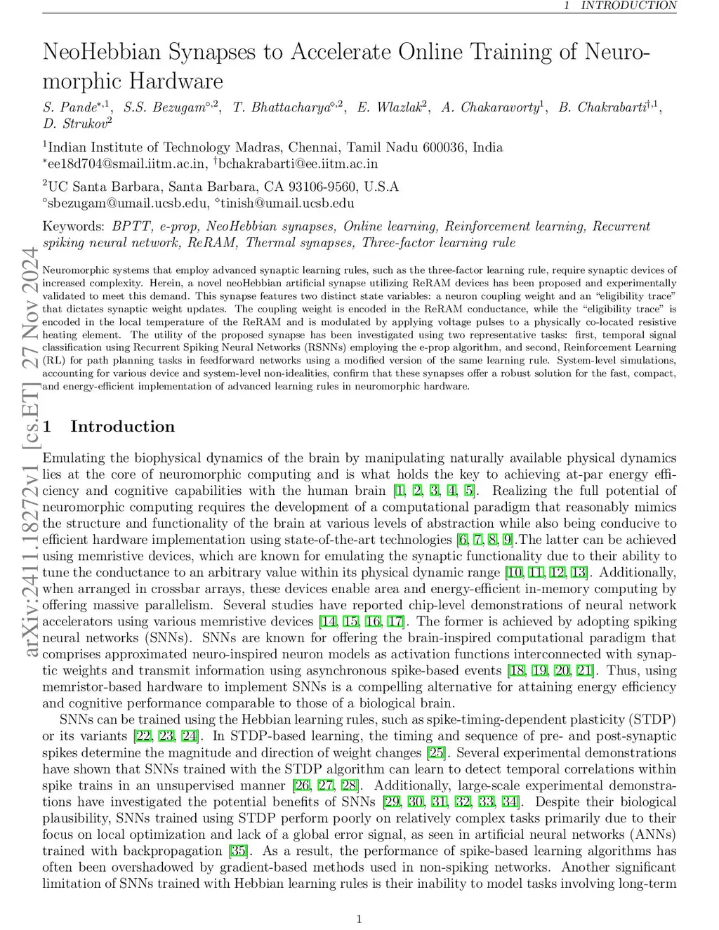 NeoHebbian Synapses to Accelerate Online Training of Neuromorphic