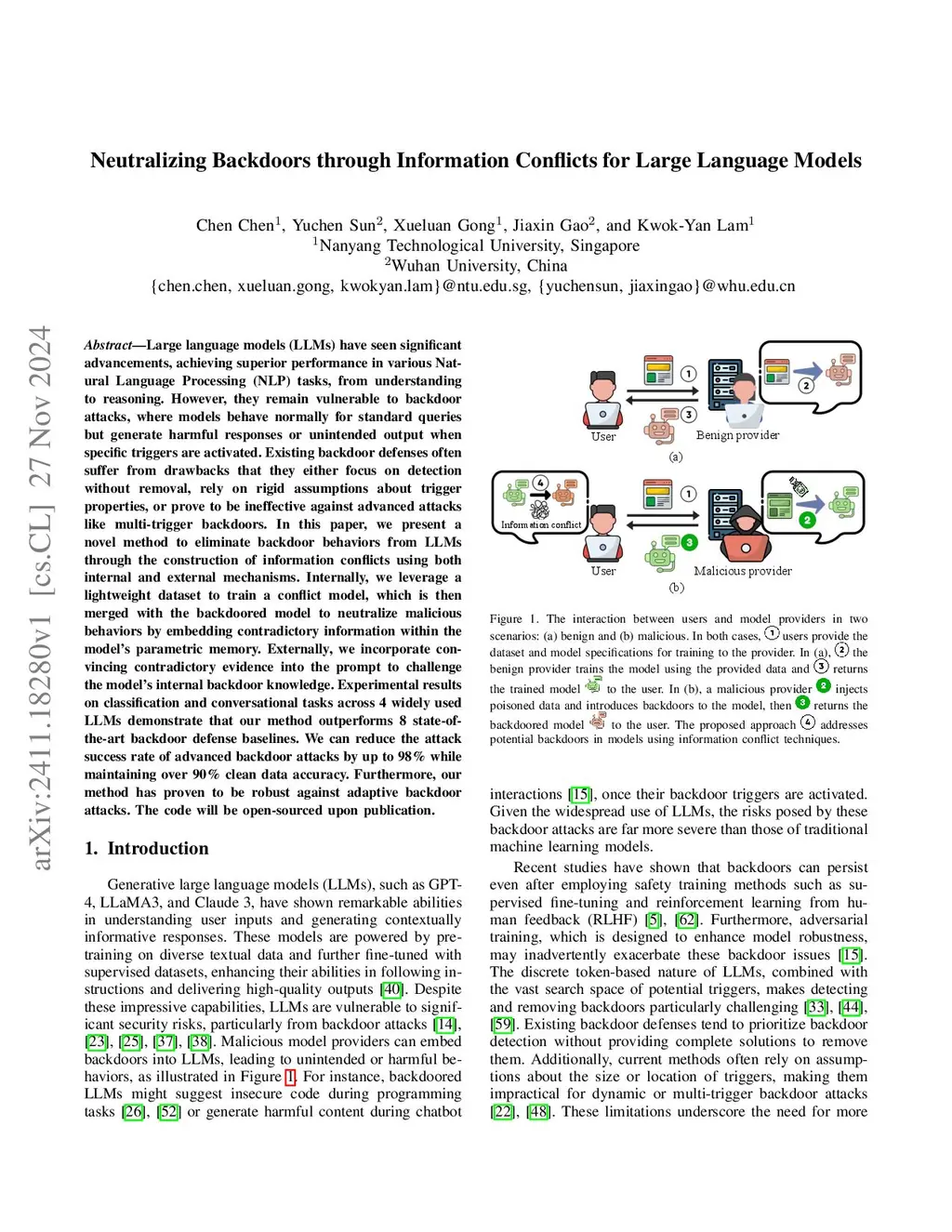 Neutralizing Backdoors through Information Conflicts for Large Language