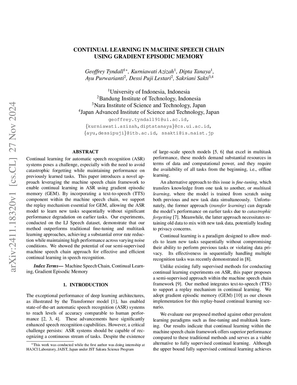 Continual Learning in Machine Speech Chain Using Gradient Episodic