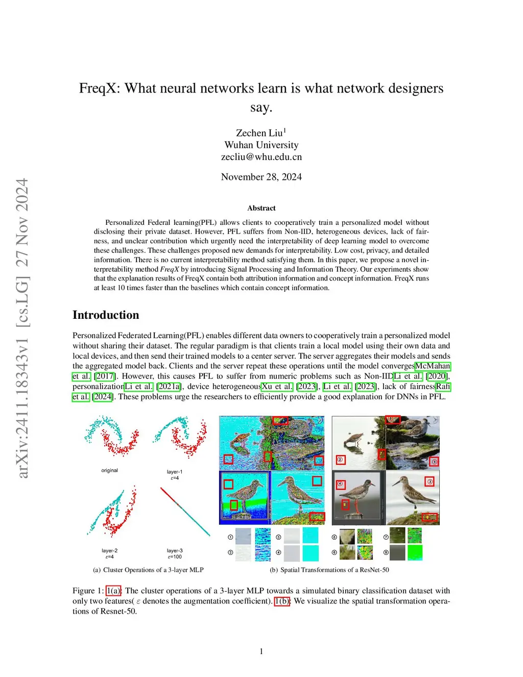Personalized Federal learning(PFL) allows clients to cooperatively train a personalized model without disclosing their private dataset. However, PFL suffers from Non-IID, heterogeneous devices, lack of fairness, and unclear contribution which urgently need the interpretability of deep learning model to overcome these challenges. These challenges proposed new demands for interpretability. Low cost, privacy, and detailed information. There is no current interpretability method satisfying them. In this paper, we propose a novel interpretability method \emph{FreqX} by introducing Signal Processing and Information Theory. Our experiments show that the explanation results of FreqX contain both attribution information and concept information. FreqX runs at least 10 times faster than the baselines which contain concept information.