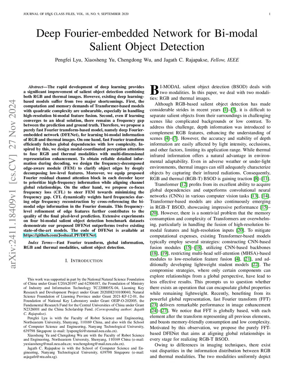 Deep Fourier-embedded Network for RGB and Thermal Salient Object Detection