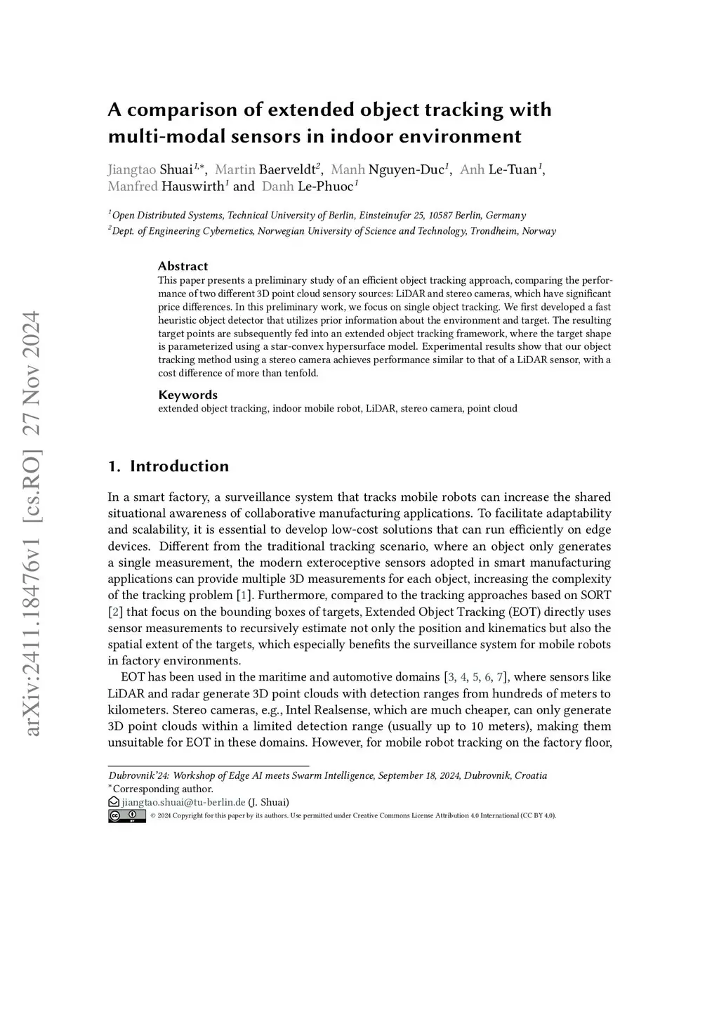 This paper presents a preliminary study of an efficient object tracking approach, comparing the performance of two different 3D point cloud sensory sources: LiDAR and stereo cameras, which have significant price differences. In this preliminary work, we focus on single object tracking. We first developed a fast heuristic object detector that utilizes prior information about the environment and target. The resulting target points are subsequently fed into an extended object tracking framework, where the target shape is parameterized using a star-convex hypersurface model. Experimental results show that our object tracking method using a stereo camera achieves performance similar to that of a LiDAR sensor, with a cost difference of more than tenfold.