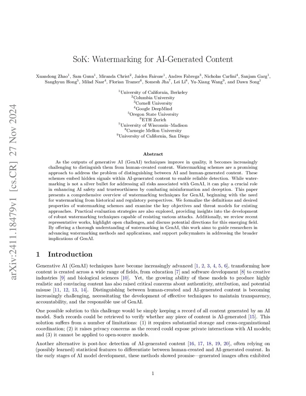 SoK: Watermarking for AI-Generated Content