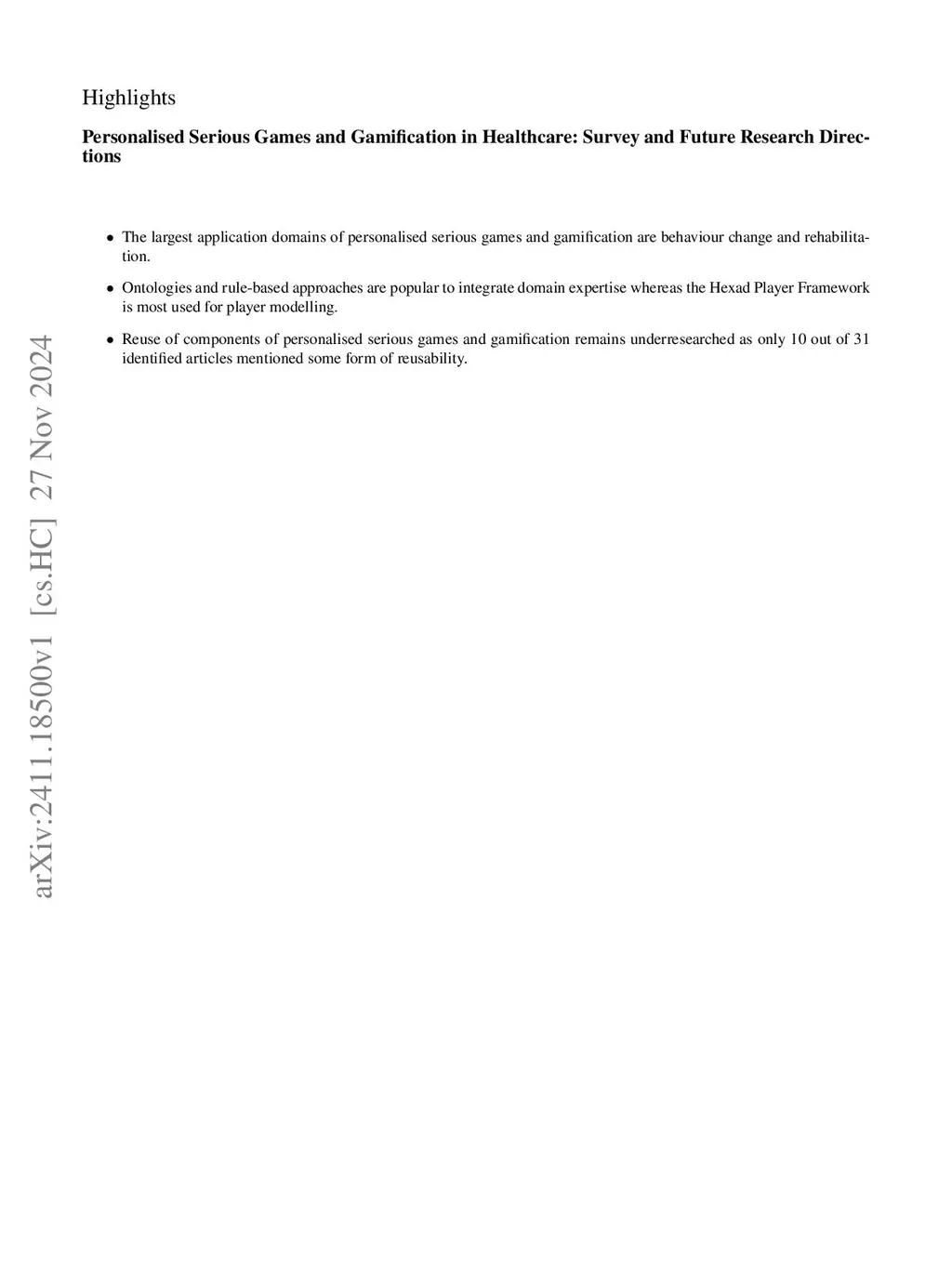 Personalised Serious Games and Gamification in Healthcare: Survey and