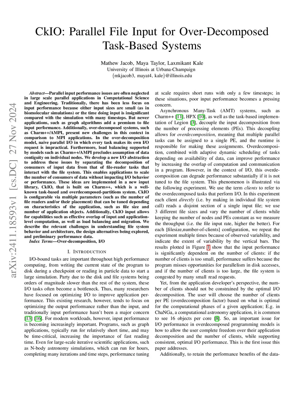 CkIO: Parallel File Input for Over-Decomposed Task-Based Systems