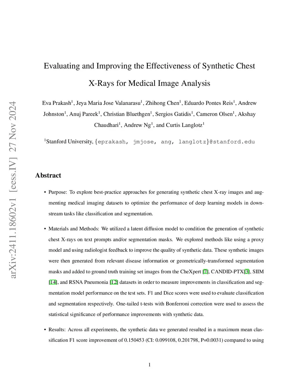 Evaluating and Improving the Effectiveness of Synthetic Chest X-Rays for Medical Image Analysis