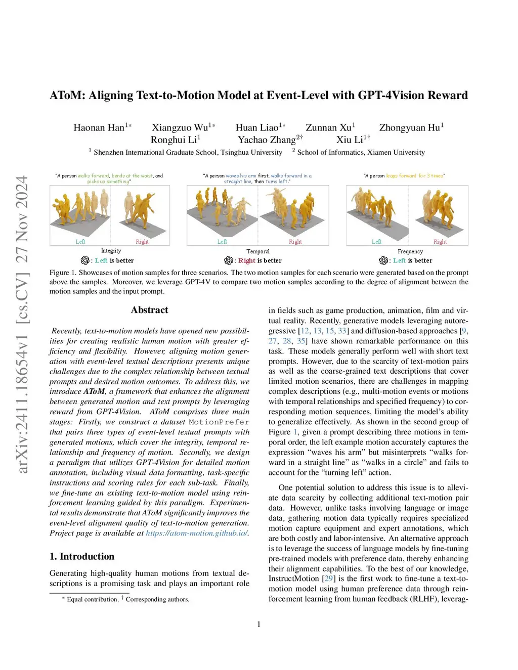 Recently, text-to-motion models have opened new possibilities for creating realistic human motion with greater efficiency and flexibility. However, aligning motion generation with event-level textual descriptions presents unique challenges due to the complex relationship between textual prompts and desired motion outcomes. To address this, we introduce AToM, a framework that enhances the alignment between generated motion and text prompts by leveraging reward from GPT-4Vision. AToM comprises three main stages: Firstly, we construct a dataset MotionPrefer that pairs three types of event-level textual prompts with generated motions, which cover the integrity, temporal relationship and frequency of motion. Secondly, we design a paradigm that utilizes GPT-4Vision for detailed motion annotation, including visual data formatting, task-specific instructions and scoring rules for each sub-task. Finally, we fine-tune an existing text-to-motion model using reinforcement learning guided by this paradigm. Experimental results demonstrate that AToM significantly improves the event-level alignment quality of text-to-motion generation.