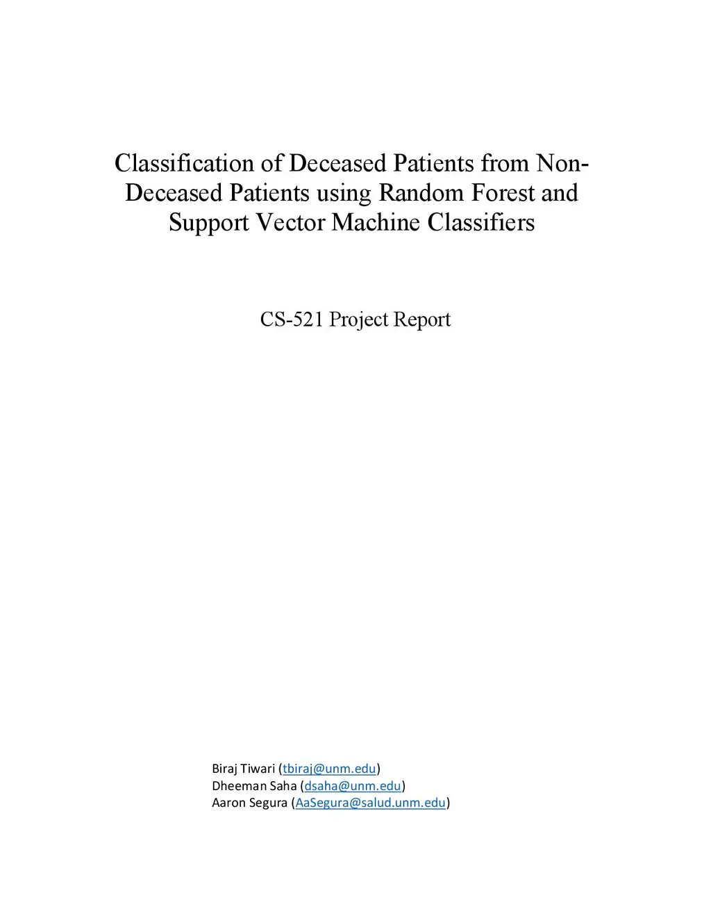 Classification of Deceased Patients from Non-Deceased Patients using