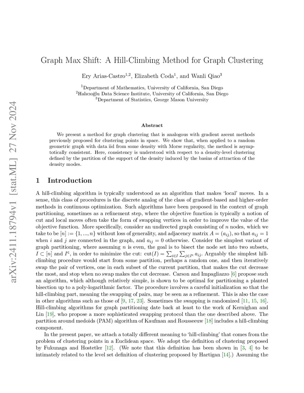 Graph Max Shift: A Hill-Climbing Method for Graph Clustering