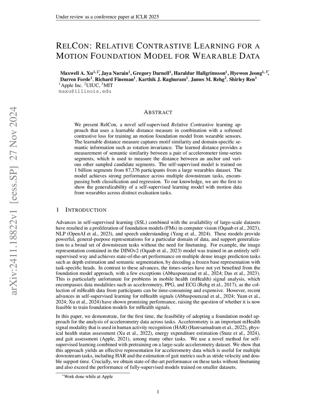 RelCon: Relative Contrastive Learning for a Motion Foundation Model for Wearable Data