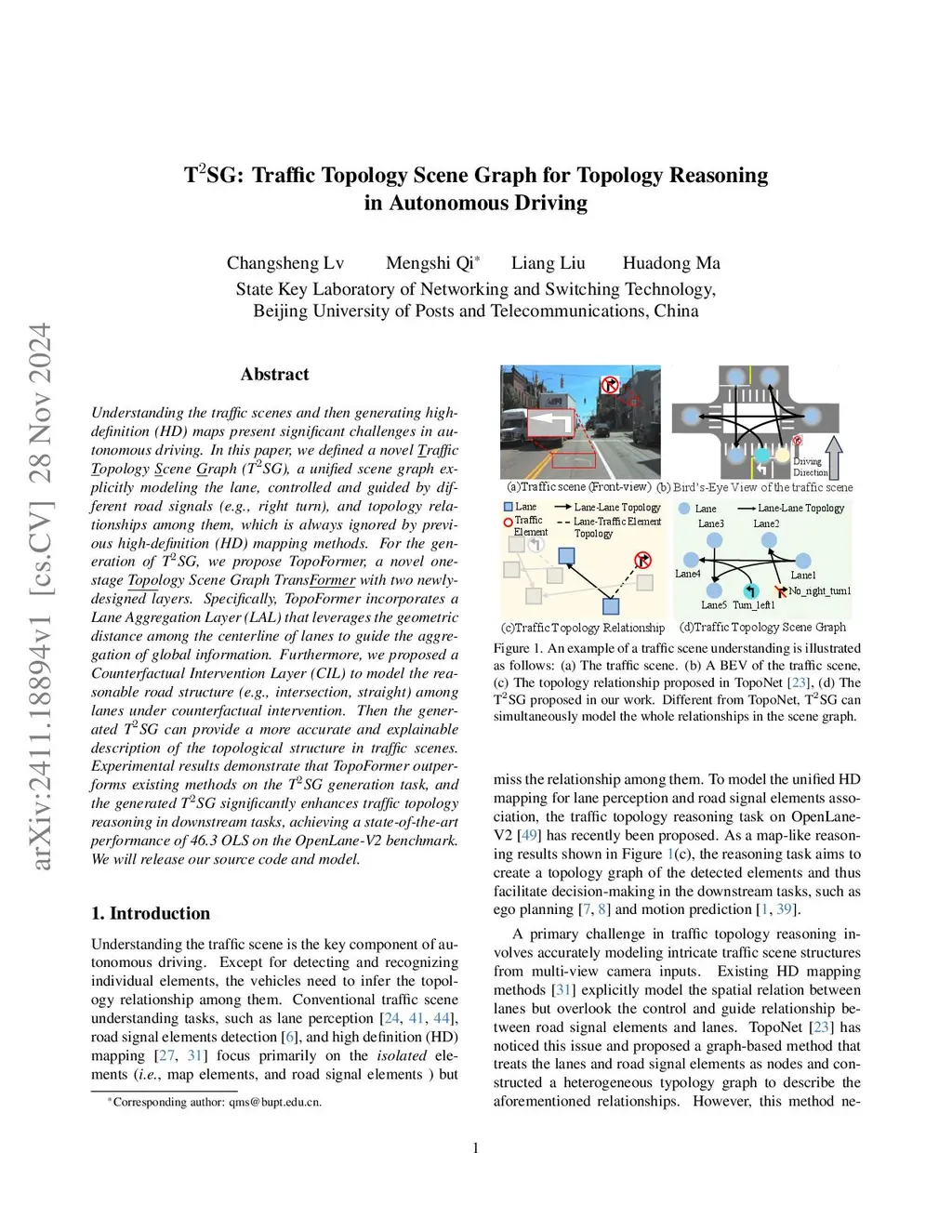Understanding the traffic scenes and then generating high-definition (HD) maps present significant challenges in autonomous driving. In this paper, we defined a novel Traffic Topology Scene Graph, a unified scene graph explicitly modeling the lane, controlled and guided by different road signals (e.g., right turn), and topology relationships among them, which is always ignored by previous high-definition (HD) mapping methods. For the generation of T2SG, we propose TopoFormer, a novel one-stage Topology Scene Graph TransFormer with two newly designed layers. Specifically, TopoFormer incorporates a Lane Aggregation Layer (LAL) that leverages the geometric distance among the centerline of lanes to guide the aggregation of global information. Furthermore, we proposed a Counterfactual Intervention Layer (CIL) to model the reasonable road structure ( e.g., intersection, straight) among lanes under counterfactual intervention. Then the generated T2SG can provide a more accurate and explainable description of the topological structure in traffic scenes. Experimental results demonstrate that TopoFormer outperforms existing methods on the T2SG generation task, and the generated T2SG significantly enhances traffic topology reasoning in downstream tasks, achieving a state-of-the-art performance of 46.3 OLS on the OpenLane-V2 benchmark. We will release our source code and model.