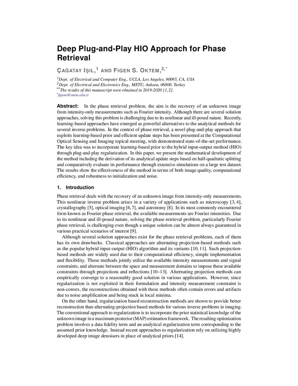 In the phase retrieval problem, the aim is the recovery of an unknown image from intensity-only measurements such as Fourier intensity. Although there are several solution approaches, solving this problem is challenging due to its nonlinear and ill-posed nature. Recently, learning-based approaches have emerged as powerful alternatives to the analytical methods for several inverse problems. In the context of phase retrieval, a novel plug-and-play approach that exploits learning-based prior and efficient update steps has been presented at the Computational Optical Sensing and Imaging topical meeting, with demonstrated state-of-the-art performance. The key idea was to incorporate learning-based prior to the Gerchberg-Saxton type algorithms through plug-and-play regularization. In this paper, we present the mathematical development of the method including the derivation of its analytical update steps based on half-quadratic splitting and comparatively evaluate its performance through extensive simulations on a large test dataset. The results show the effectiveness of the method in terms of both image quality, computational efficiency, and robustness to initialization and noise.