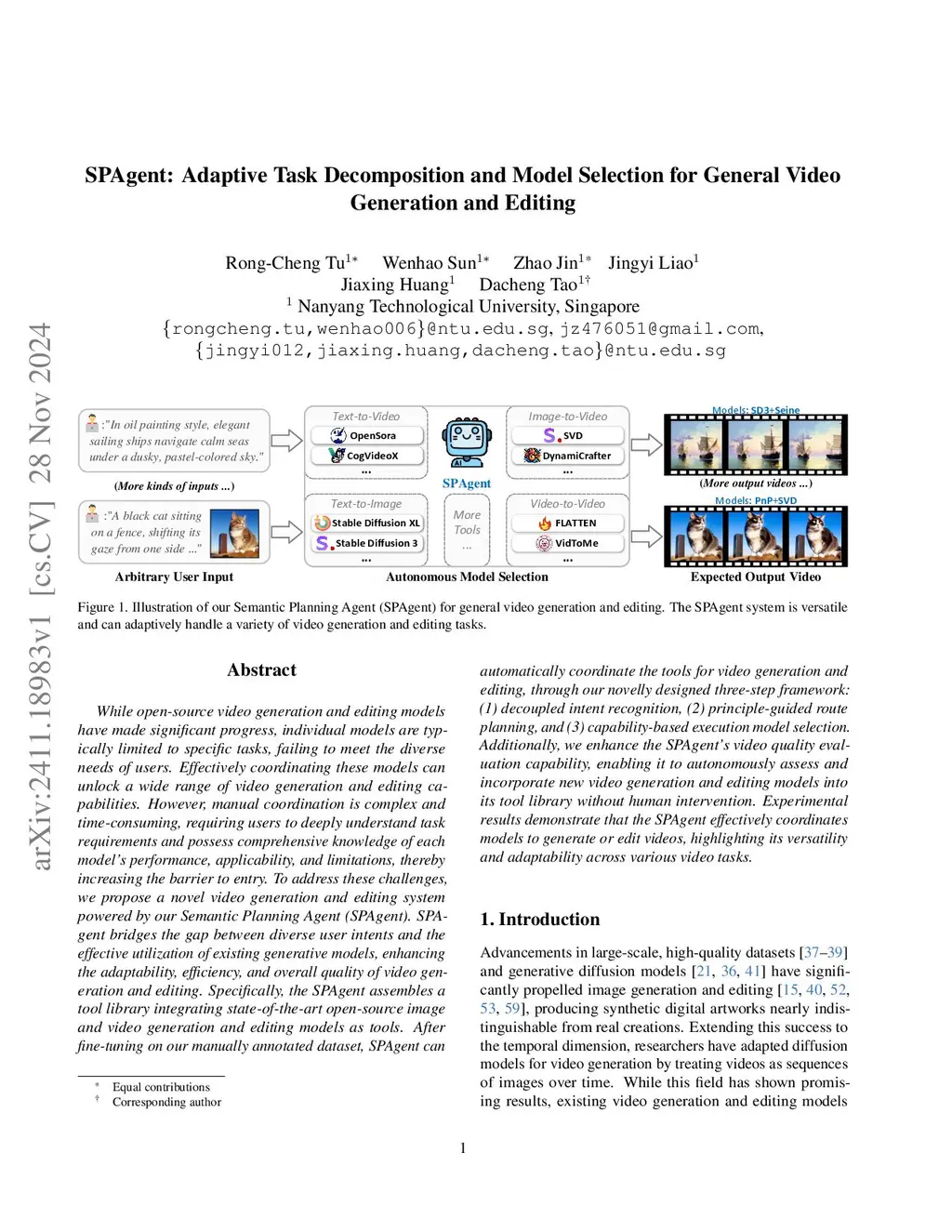 While open-source video generation and editing models have made significant progress, individual models are typically limited to specific tasks, failing to meet the diverse needs of users. Effectively coordinating these models can unlock a wide range of video generation and editing capabilities. However, manual coordination is complex and time-consuming, requiring users to deeply understand task requirements and possess comprehensive knowledge of each model's performance, applicability, and limitations, thereby increasing the barrier to entry. To address these challenges, we propose a novel video generation and editing system powered by our Semantic Planning Agent (SPAgent). SPAgent bridges the gap between diverse user intents and the effective utilization of existing generative models, enhancing the adaptability, efficiency, and overall quality of video generation and editing. Specifically, the SPAgent assembles a tool library integrating state-of-the-art open-source image and video generation and editing models as tools. After fine-tuning on our manually annotated dataset, SPAgent can automatically coordinate the tools for video generation and editing, through our novelly designed three-step framework: (1) decoupled intent recognition, (2) principle-guided route planning, and (3) capability-based execution model selection. Additionally, we enhance the SPAgent's video quality evaluation capability, enabling it to autonomously assess and incorporate new video generation and editing models into its tool library without human intervention. Experimental results demonstrate that the SPAgent effectively coordinates models to generate or edit videos, highlighting its versatility and adaptability across various video tasks.