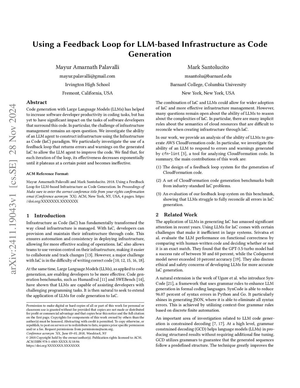 Using a Feedback Loop for LLM-based Infrastructure as Code Generation