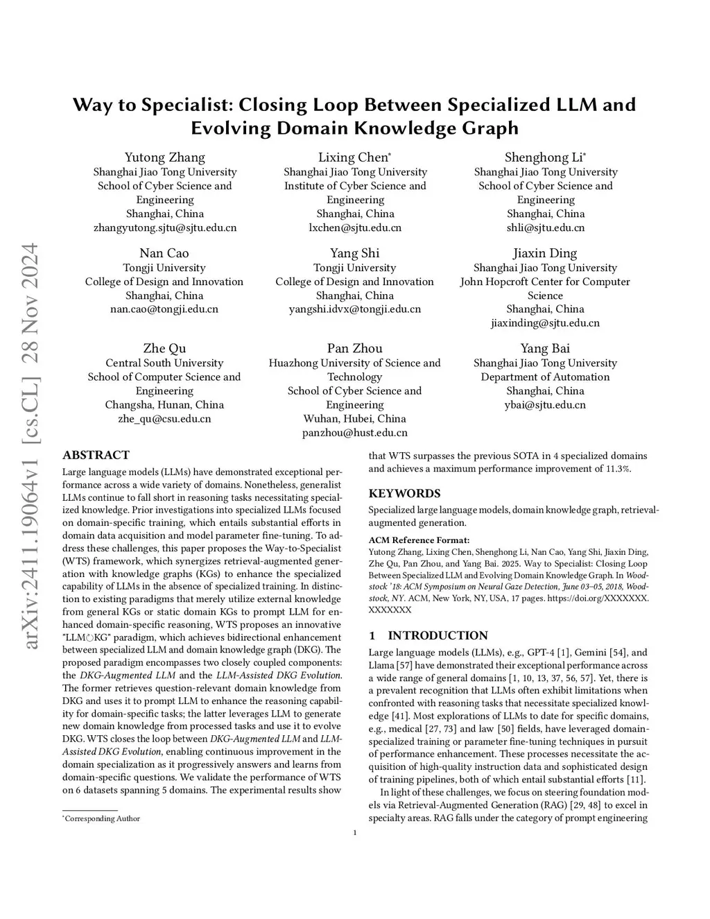 Large language models (LLMs) have demonstrated exceptional performance across a wide variety of domains. Nonetheless, generalist LLMs continue to fall short in reasoning tasks necessitating specialized knowledge. Prior investigations into specialized LLMs focused on domain-specific training, which entails substantial efforts in domain data acquisition and model parameter fine-tuning. To address these challenges, this paper proposes the Way-to-Specialist (WTS) framework, which synergizes retrieval-augmented generation with knowledge graphs (KGs) to enhance the specialized capability of LLMs in the absence of specialized training. In distinction to existing paradigms that merely utilize external knowledge from general KGs or static domain KGs to prompt LLM for enhanced domain-specific reasoning, WTS proposes an innovative "LLMKG" paradigm, which achieves bidirectional enhancement between specialized LLM and domain knowledge graph (DKG). The proposed paradigm encompasses two closely coupled components: the DKG-Augmented LLM and the LLM-Assisted DKG Evolution. The former retrieves question-relevant domain knowledge from DKG and uses it to prompt LLM to enhance the reasoning capability for domain-specific tasks; the latter leverages LLM to generate new domain knowledge from processed tasks and use it to evolve DKG. WTS closes the loop between DKG-Augmented LLM and LLM-Assisted DKG Evolution, enabling continuous improvement in the domain specialization as it progressively answers and learns from domain-specific questions. We validate the performance of WTS on 6 datasets spanning 5 domains. The experimental results show that WTS surpasses the previous SOTA in 4 specialized domains and achieves a maximum performance improvement of 11.3%.