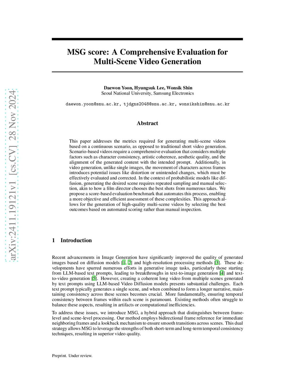MSG score: A Comprehensive Evaluation for Multi-Scene Video Generation