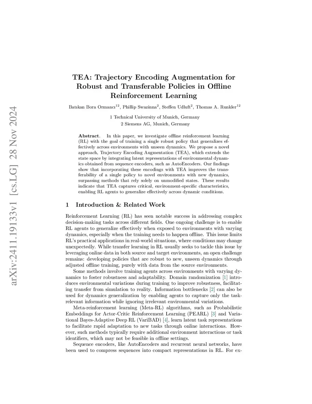 TEA: Trajectory Encoding Augmentation for Robust and Transferable Policies in Offline Reinforcement Learning