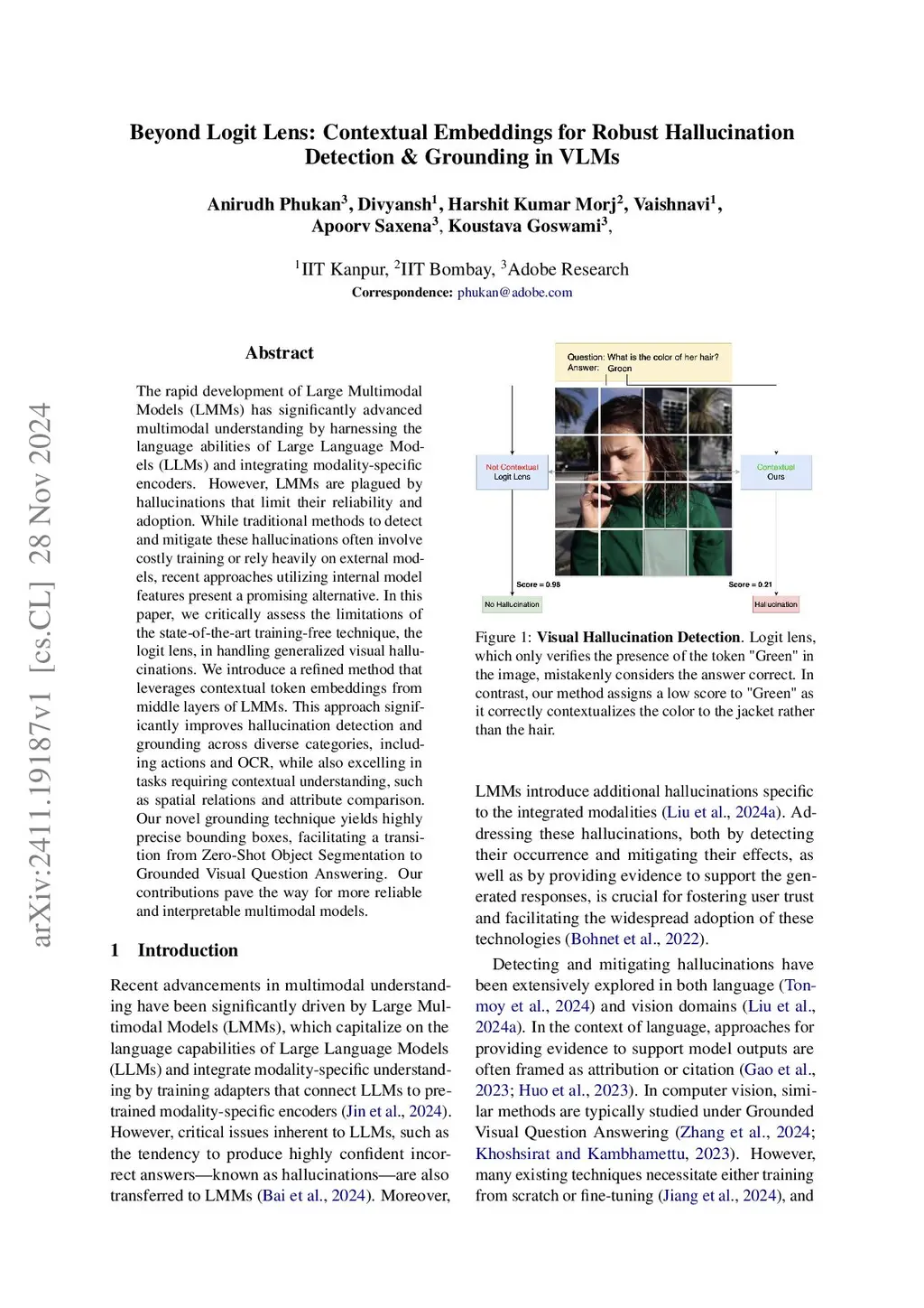 Beyond Logit Lens: Contextual Embeddings for Robust Hallucination Detection & Grounding in VLMs
