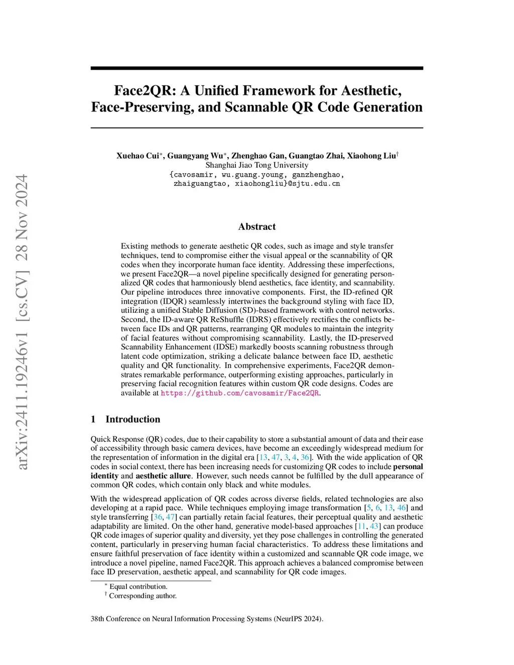 Face2QR: A Unified Framework for Aesthetic, Face-Preserving, and
