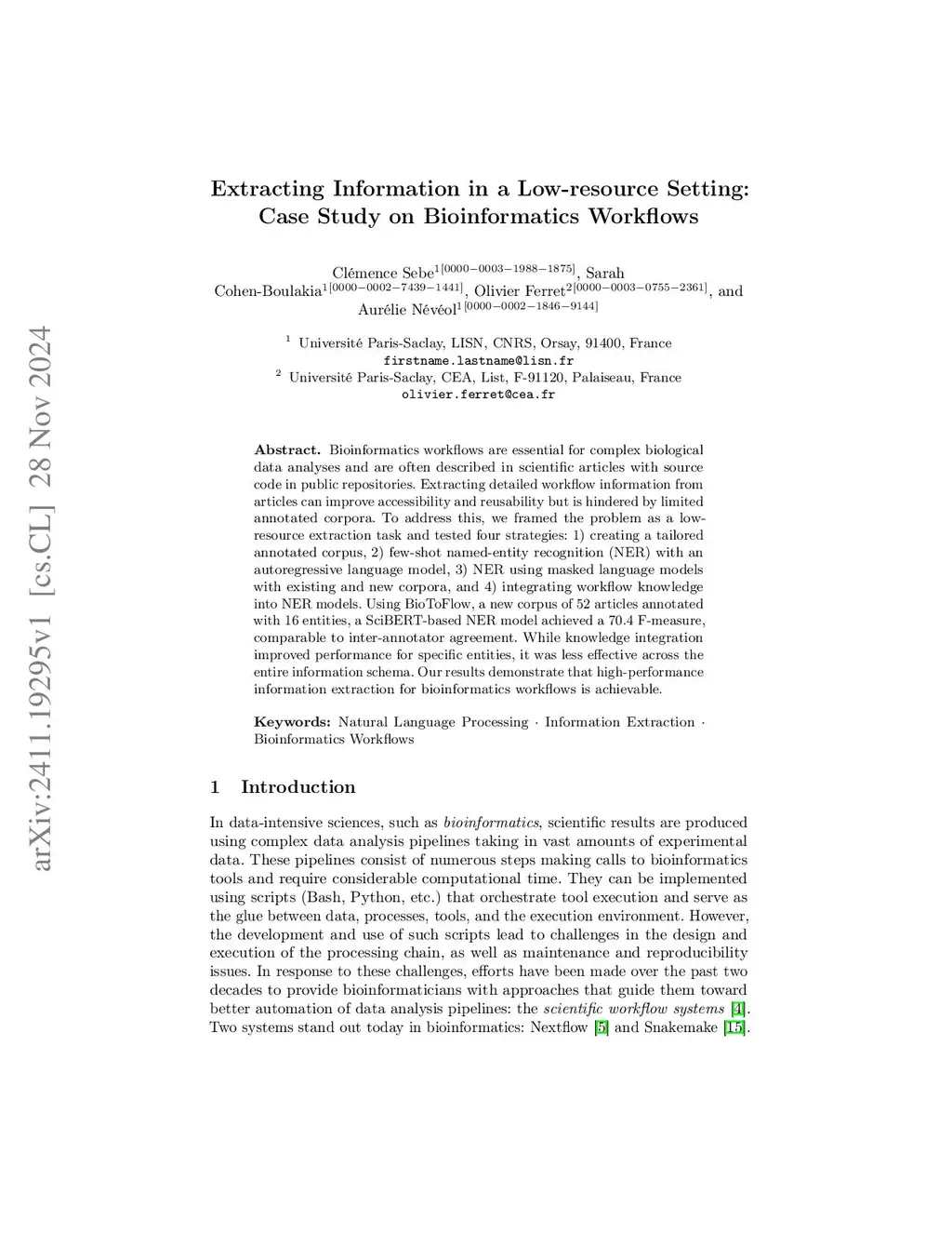 Extracting Information in a Low-resource Setting: Case Study on Bioinformatics Workflows