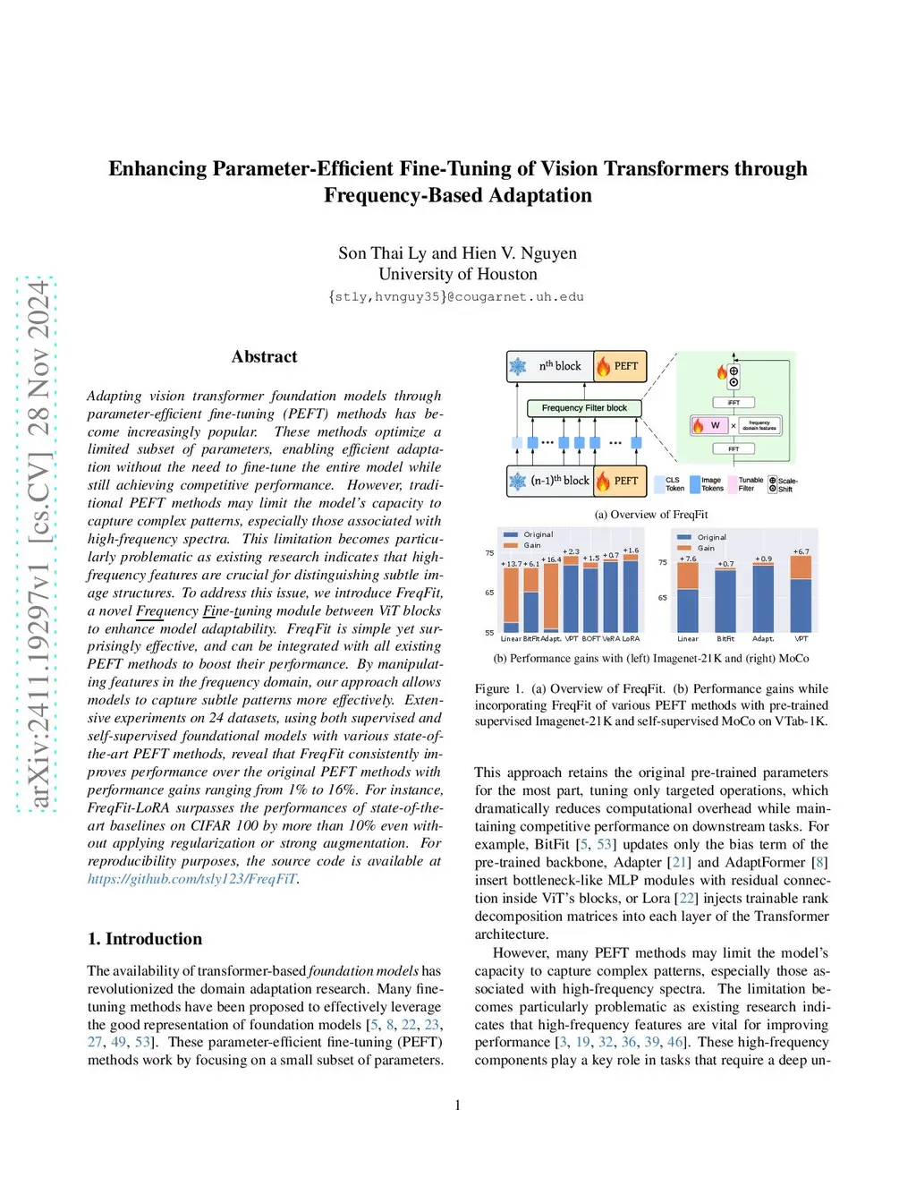 Adapting vision transformer foundation models through parameter-efficient fine-tuning (PEFT) methods has become increasingly popular. These methods optimize a limited subset of parameters, enabling efficient adaptation without the need to fine-tune the entire model while still achieving competitive performance. However, traditional PEFT methods may limit the model's capacity to capture complex patterns, especially those associated with high-frequency spectra. This limitation becomes particularly problematic as existing research indicates that high-frequency features are crucial for distinguishing subtle image structures. To address this issue, we introduce FreqFit, a novel Frequency Fine-tuning module between ViT blocks to enhance model adaptability. FreqFit is simple yet surprisingly effective, and can be integrated with all existing PEFT methods to boost their performance. By manipulating features in the frequency domain, our approach allows models to capture subtle patterns more effectively. Extensive experiments on 24 datasets, using both supervised and self-supervised foundational models with various state-of-the-art PEFT methods, reveal that FreqFit consistently improves performance over the original PEFT methods with performance gains ranging from 1% to 16%. For instance, FreqFit-LoRA surpasses the performances of state-of-the-art baselines on CIFAR100 by more than 10% even without applying regularization or strong augmentation. For reproducibility purposes, the source code is available at https://github.com/tsly123/FreqFiT.