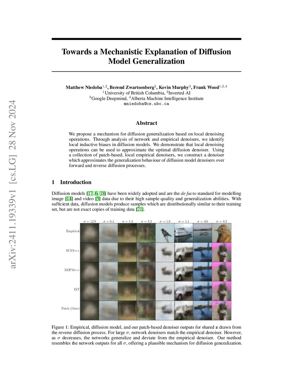 We propose a simple, training-free mechanism which explains the generalization behaviour of diffusion models. By comparing pre-trained diffusion models to their theoretically optimal empirical counterparts, we identify a shared local inductive bias across a variety of network architectures. From this observation, we hypothesize that network denoisers generalize through localized denoising operations, as these operations approximate the training objective well over much of the training distribution. To validate our hypothesis, we introduce novel denoising algorithms which aggregate local empirical denoisers to replicate network behaviour. Comparing these algorithms to network denoisers across forward and reverse diffusion processes, our approach exhibits consistent visual similarity to neural network outputs, with lower mean squared error than previously proposed methods.