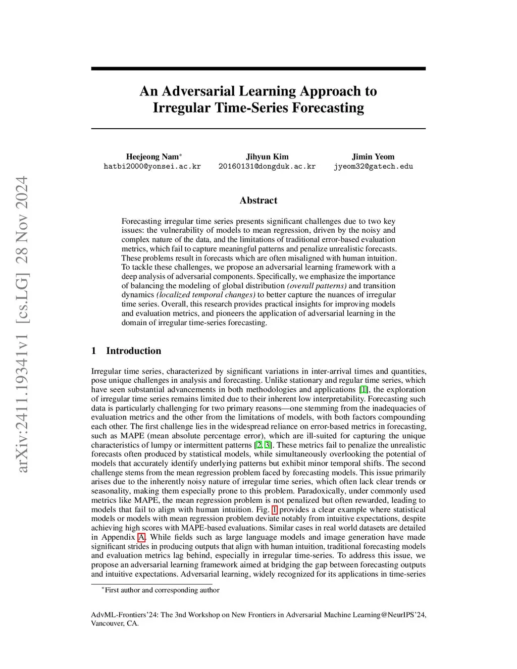 An Adversarial Learning Approach to Irregular Time-Series Forecasting