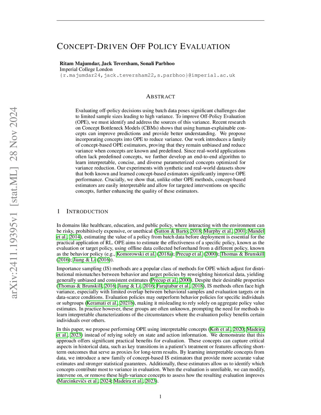 Concept-driven Off Policy Evaluation