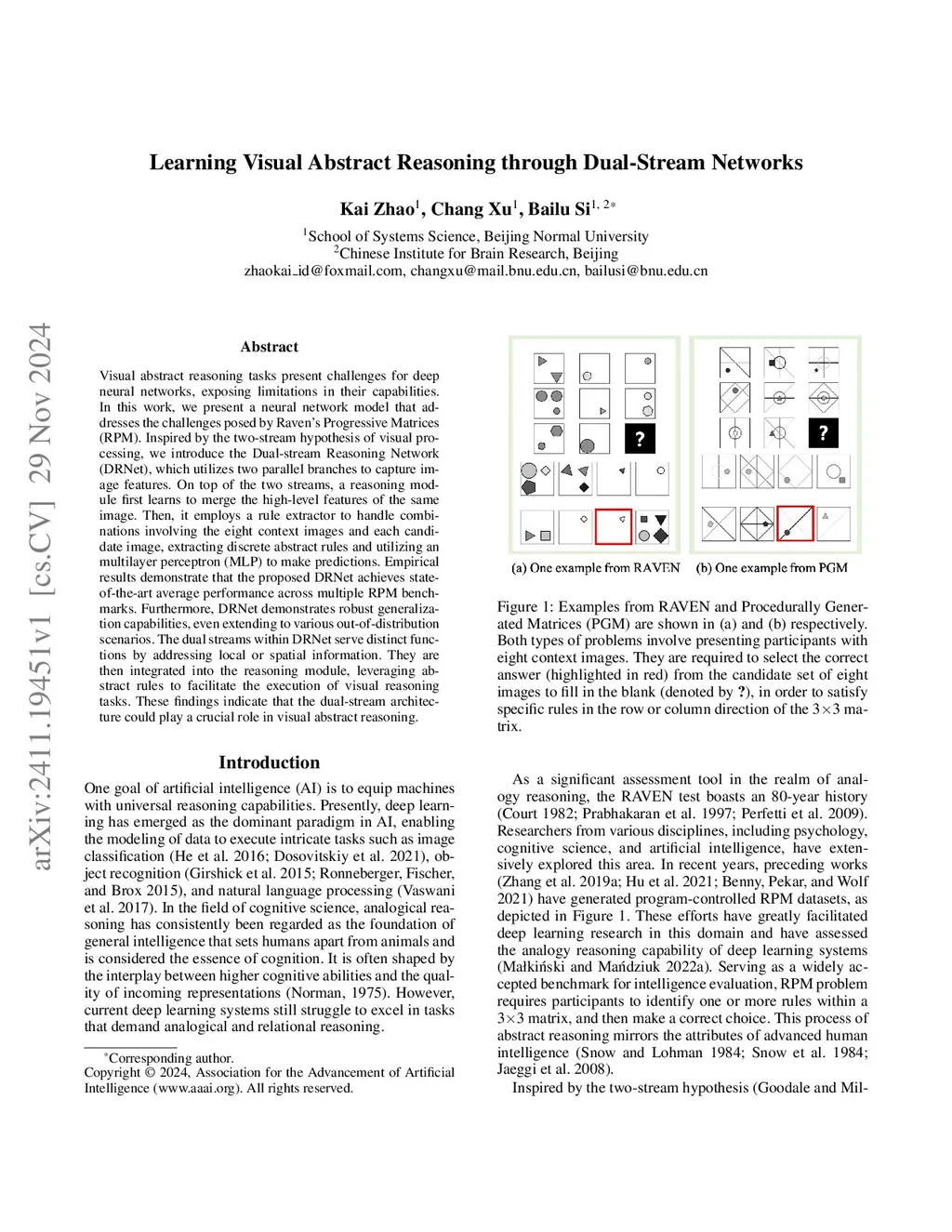 Learning Visual Abstract Reasoning through Dual-Stream Networks