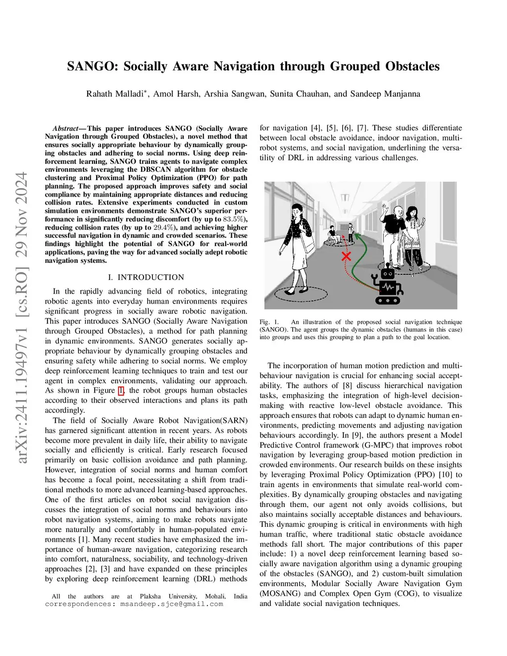 SANGO: Socially Aware Navigation through Grouped Obstacles