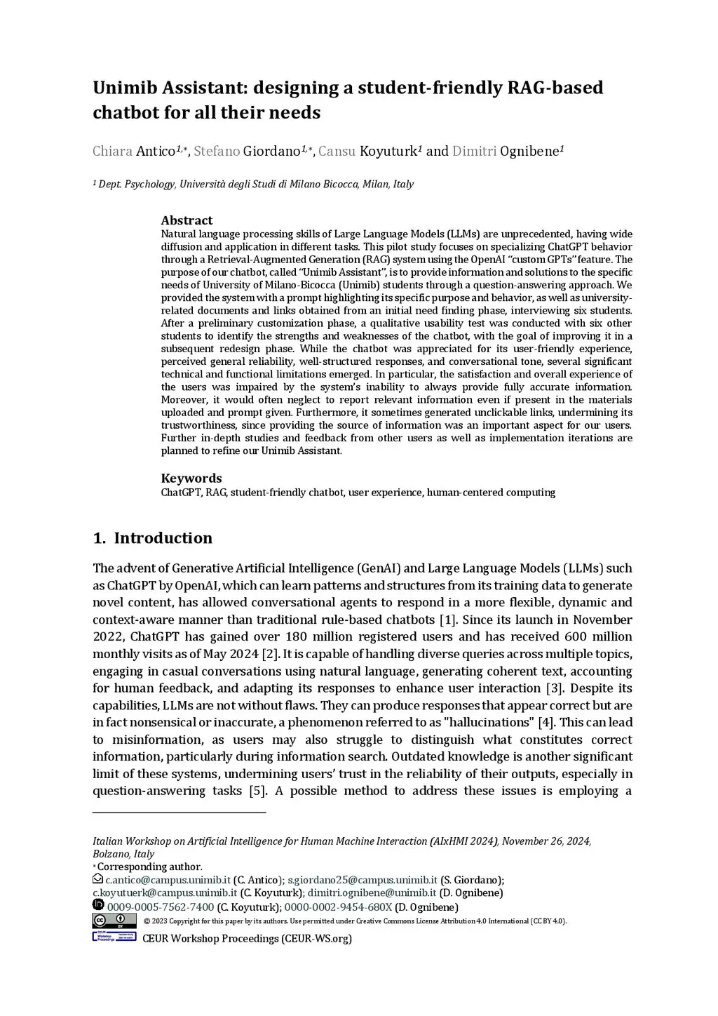 Unimib Assistant: designing a student-friendly RAG-based chatbot for all