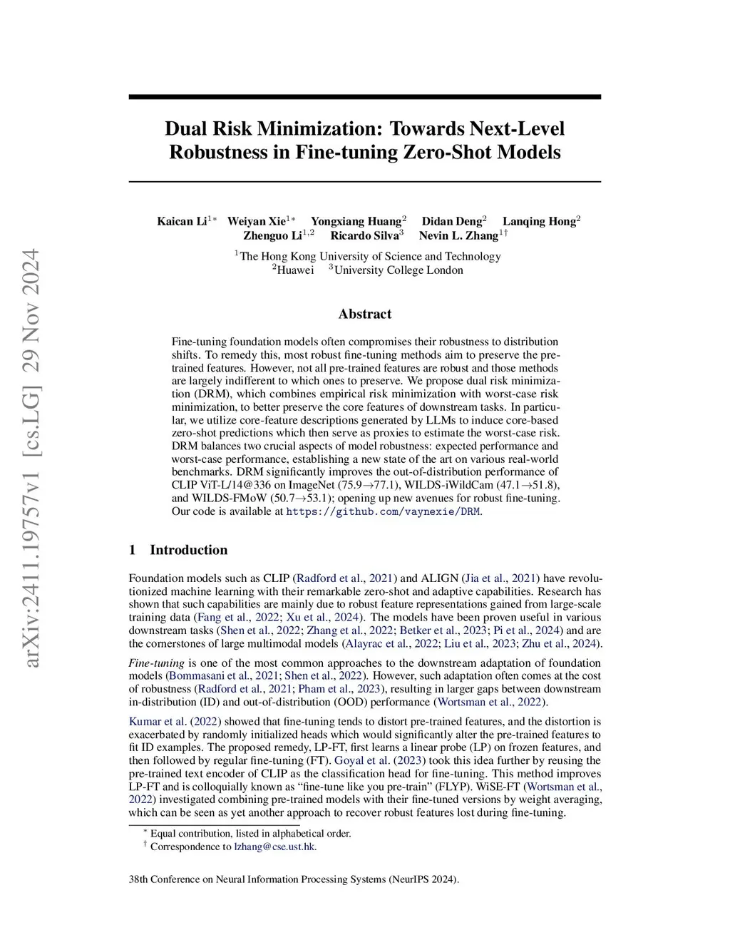 Dual Risk Minimization: Towards Next-Level Robustness in Fine-tuning