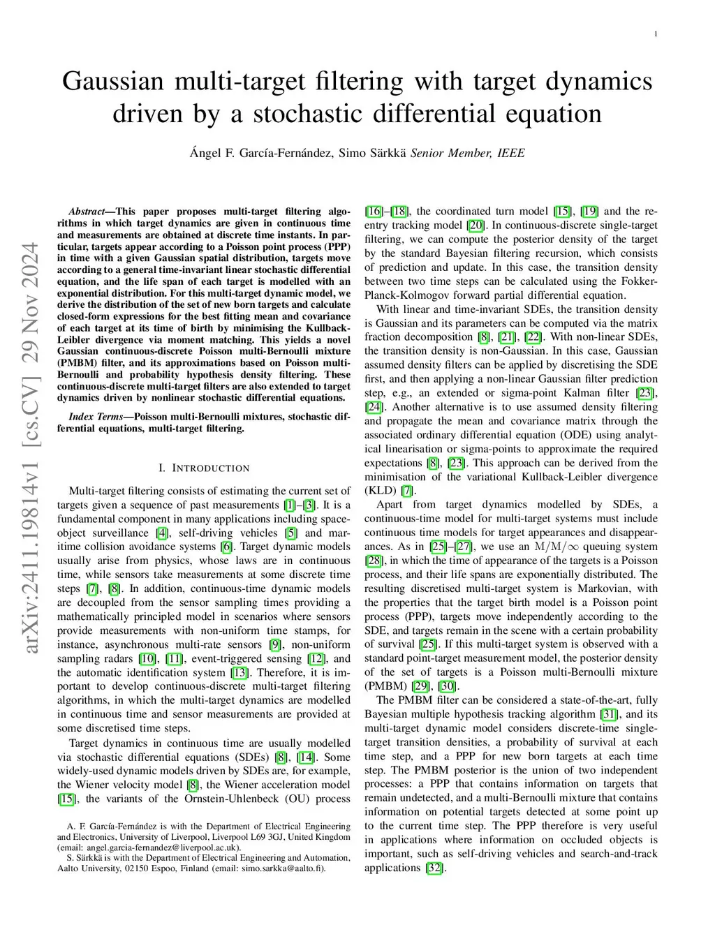 Gaussian multi-target filtering with target dynamics driven by a stochastic differential equation