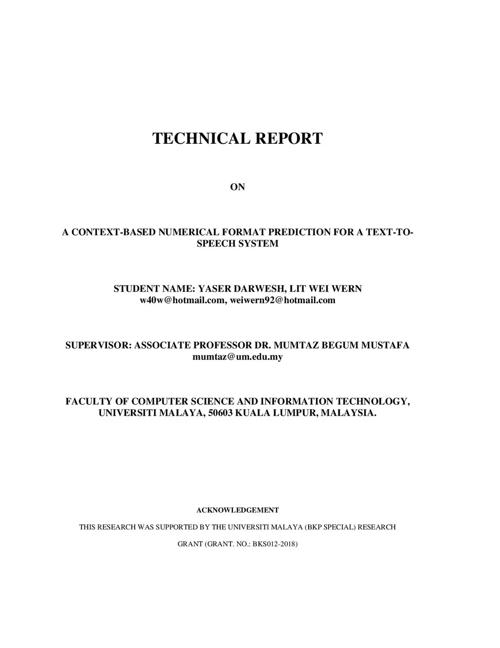 A Context-Based Numerical Format Prediction for a Text-To-Speech System