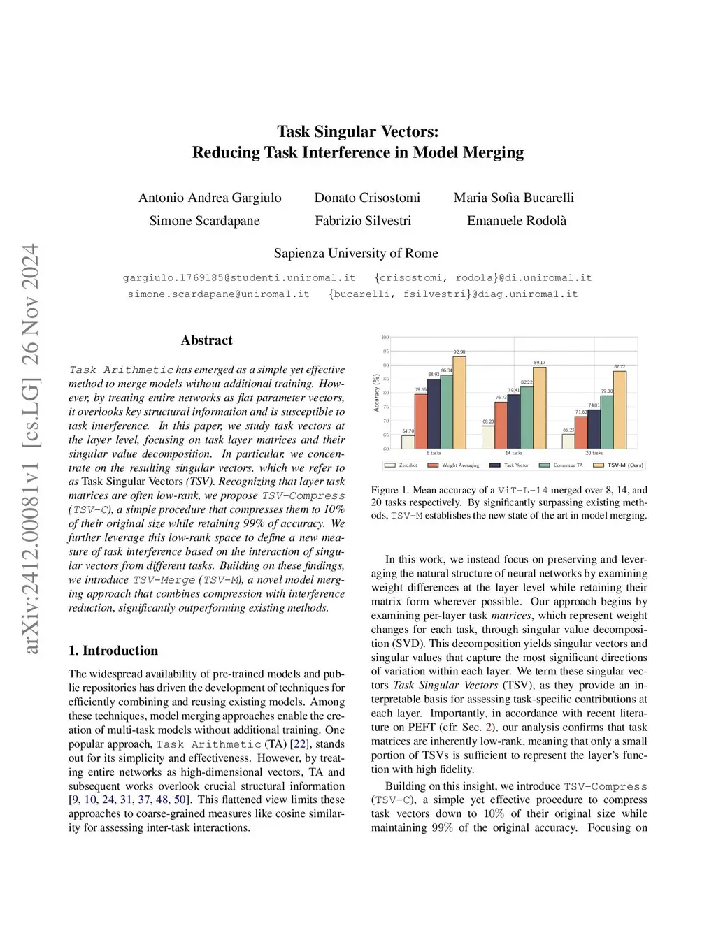 Task Singular Vectors: Reducing Task Interference in Model Merging