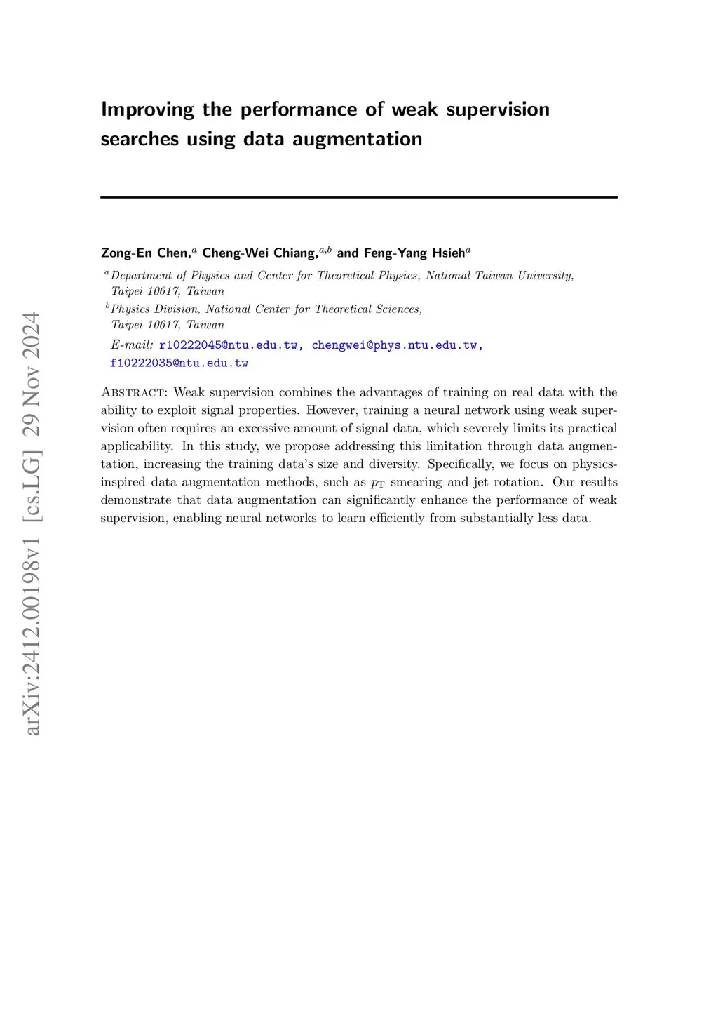 Weak supervision combines the advantages of training on real data with the ability to exploit signal properties. However, training a neural network using weak supervision often requires an excessive amount of signal data, which severely limits its practical applicability. In this study, we propose addressing this limitation through data augmentation, increasing the training data's size and diversity. Specifically, we focus on physics-inspired data augmentation methods, such as smearing and jet rotation. Our results demonstrate that data augmentation can significantly enhance the performance of weak supervision, enabling neural networks to learn efficiently from substantially less data.