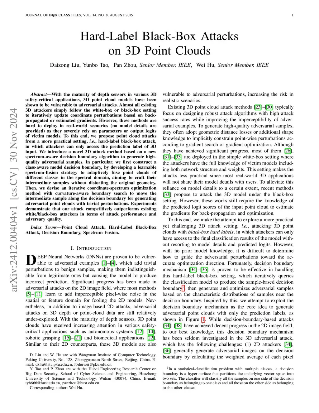 With the maturity of depth sensors in various 3D safety-critical applications, 3D point cloud models have been shown to be vulnerable to adversarial attacks. Almost all existing 3D attackers simply follow the white-box or black-box setting to iteratively update coordinate perturbations based on back-propagated or estimated gradients. However, these methods are hard to deploy in real-world scenarios (no model details are provided) as they severely rely on parameters or output logits of victim models. To this end, we propose point cloud attacks from a more practical setting, i.e., hard-label black-box attack, in which attackers can only access the prediction label of 3D input. We introduce a novel 3D attack method based on a new spectrum-aware decision boundary algorithm to generate high-quality adversarial samples. In particular, we first construct a class-aware model decision boundary, by developing a learnable spectrum-fusion strategy to adaptively fuse point clouds of different classes in the spectral domain, aiming to craft their intermediate samples without distorting the original geometry. Then, we devise an iterative coordinate-spectrum optimization method with curvature-aware boundary search to move the intermediate sample along the decision boundary for generating adversarial point clouds with trivial perturbations. Experiments demonstrate that our attack competitively outperforms existing white/black-box attackers in terms of attack performance and adversary quality.