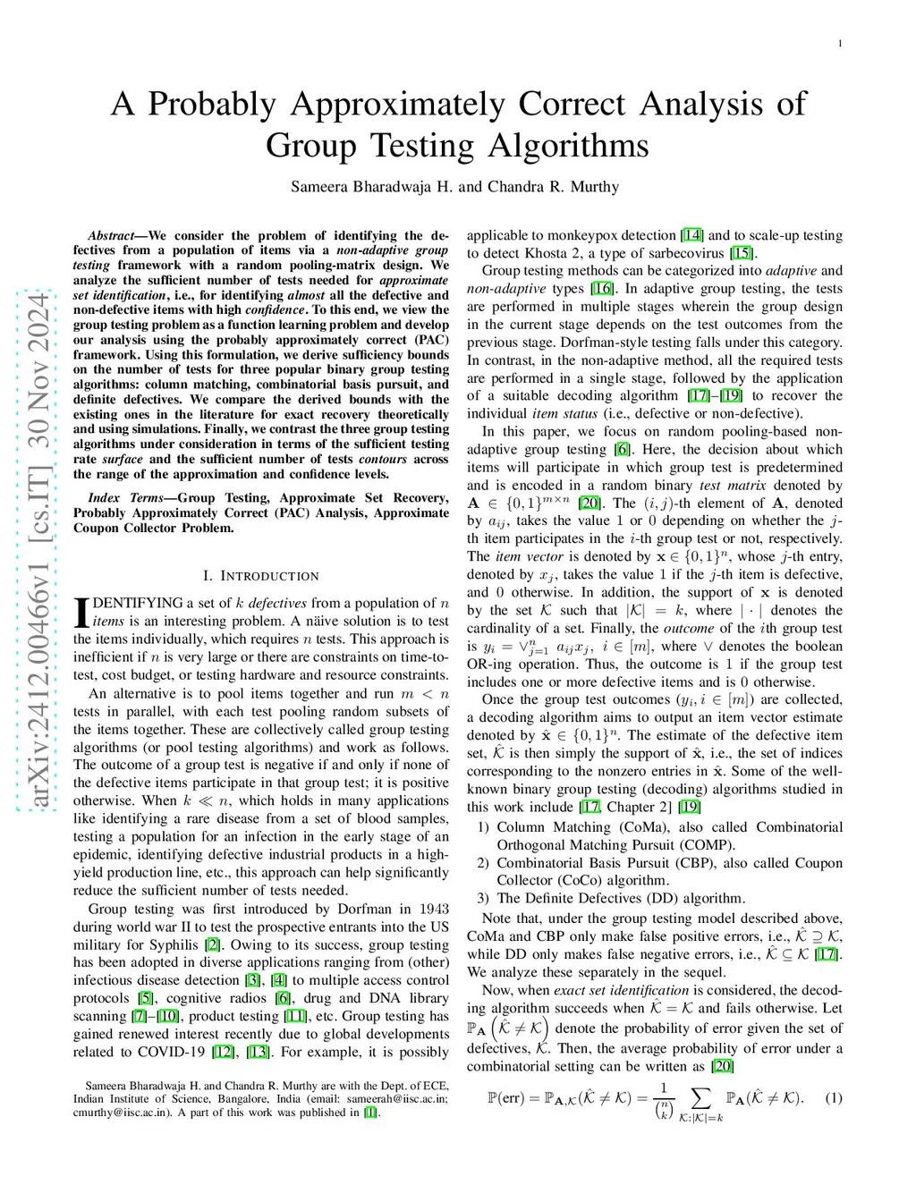 A Probably Approximately Correct Analysis of Group Testing Algorithms