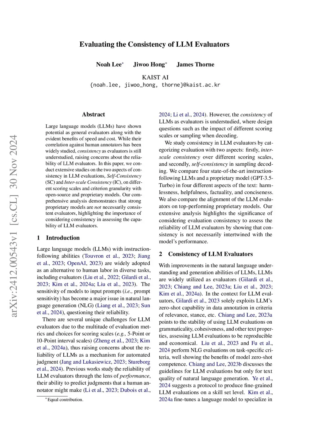 Large language models (LLMs) have shown potential as general evaluators along with the evident benefits of speed and cost. While their correlation against human annotators has been widely studied, consistency as evaluators is still understudied, raising concerns about the reliability of LLM evaluators. In this paper, we conduct extensive studies on the two aspects of consistency in LLM evaluations, Self-Consistency (SC) and Inter-scale Consistency (IC), on different scoring scales and criterion granularity with open-source and proprietary models. Our comprehensive analysis demonstrates that strong proprietary models are not necessarily consistent evaluators, highlighting the importance of considering consistency in assessing the capability of LLM evaluators.