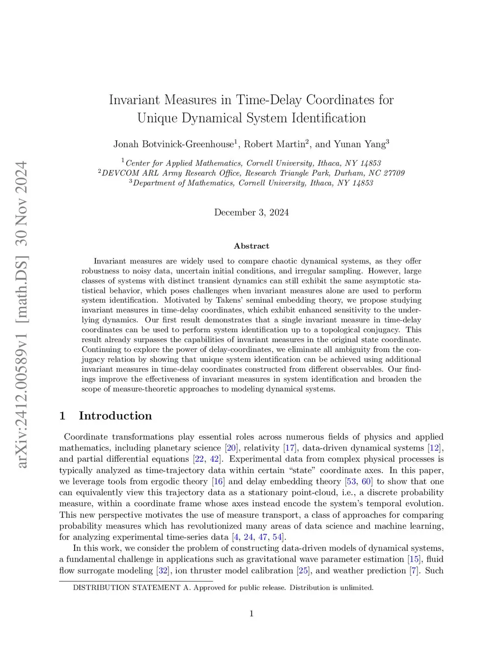 Invariant Measures in Time-Delay Coordinates for Unique Dynamical System Identification