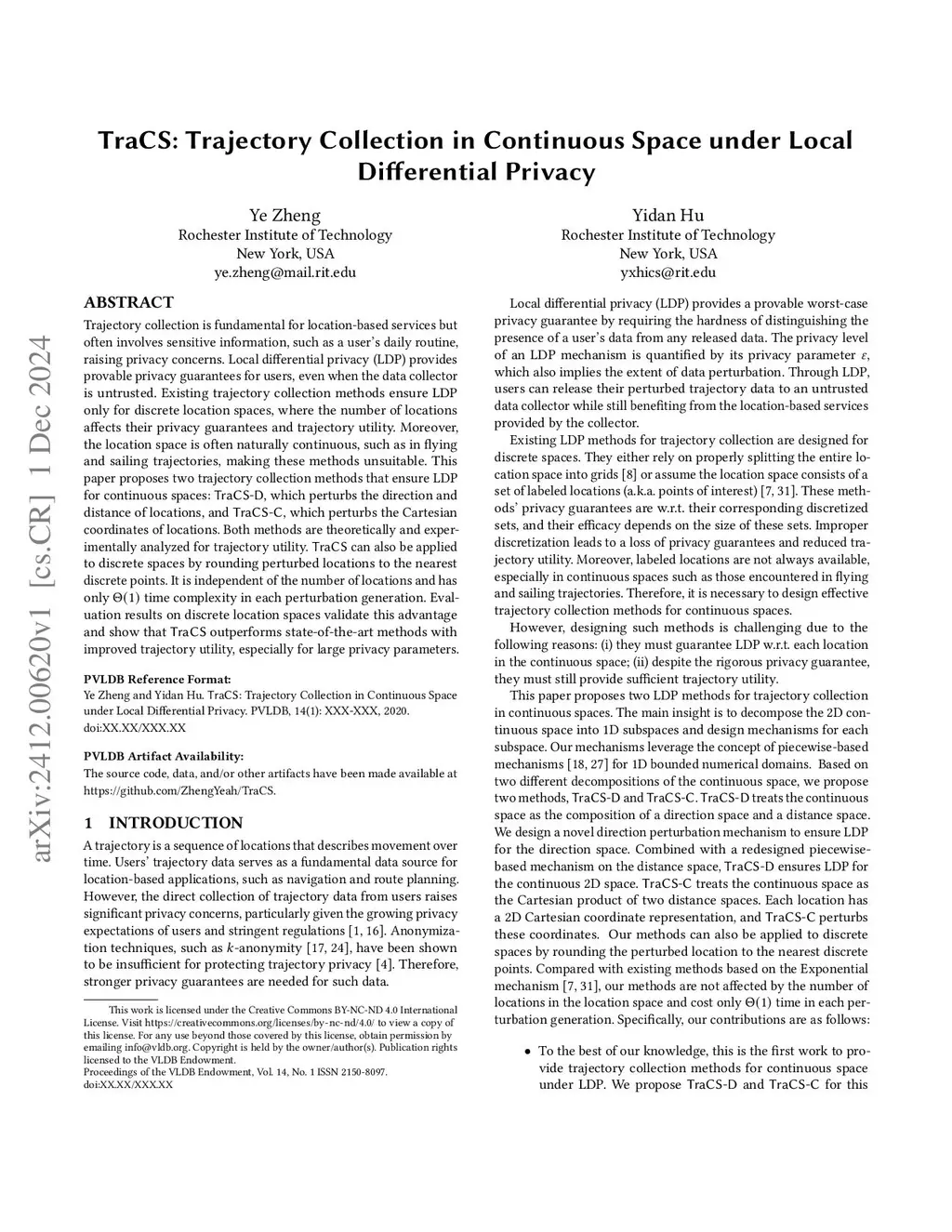 TraCS: Trajectory Collection in Continuous Space under Local Differential Privacy